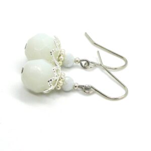 Blue and white orchids on the left hand, blue and white lilies on the right hand.