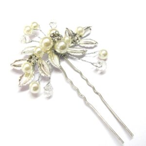 Leaf and pearl pin silver 1a