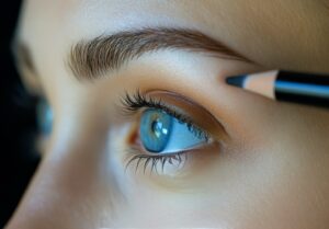 Close up of a person applying eyebrow pencil in soft lighting with striking blue eyes January 16, 2026 | | Leave a Comment