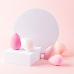 Cosmetic beauty Blender Sponge Set in various colors in pink tone on white podium. pink background. Front view. liquid cosmetics application tool. January 14, 2026 | | Leave a Comment
