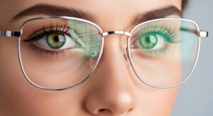 Close-up portrait of a woman’s green eyes behind modern eyeglass frames, crystal-clear lens reflections January 16, 2026 | | Leave a Comment