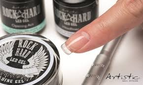 ‘Acrylics’ are sculpted using a polymer powder that is mixed with a liquid monomer, and this mixture is then placed over the natural nail, to add length and strength. The proper term for this liquid & powder or L&P, with acrylics being the common term that non-beauty professionals use. These can be applied in two different ways; either over a tip, a lightweight plastic plate that is glued onto the end of the natural nail, the acrylic (or hard gel) is then applied over the entire natural nail and plastic tip.