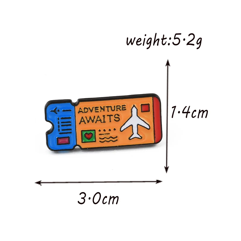 Navy, orange, and white, Adventure Awaits enamel pin.