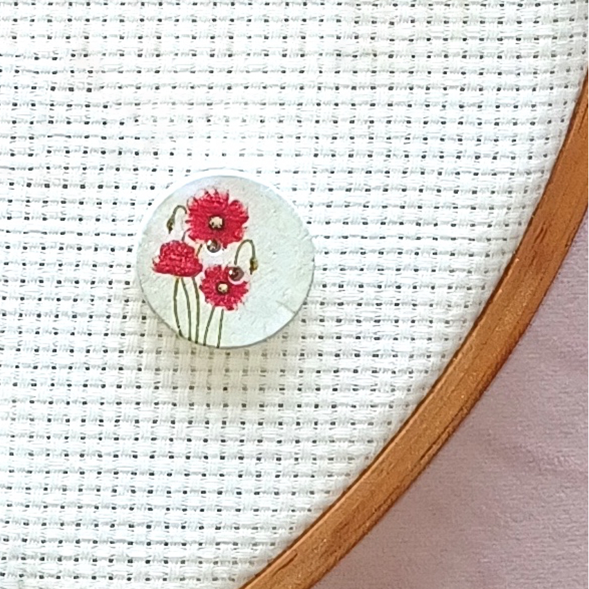 Handmade assorted floral wooden magnetic needle minder to keep your needle safe while you’re changing floss colours, or storing your item between stitching sessions.