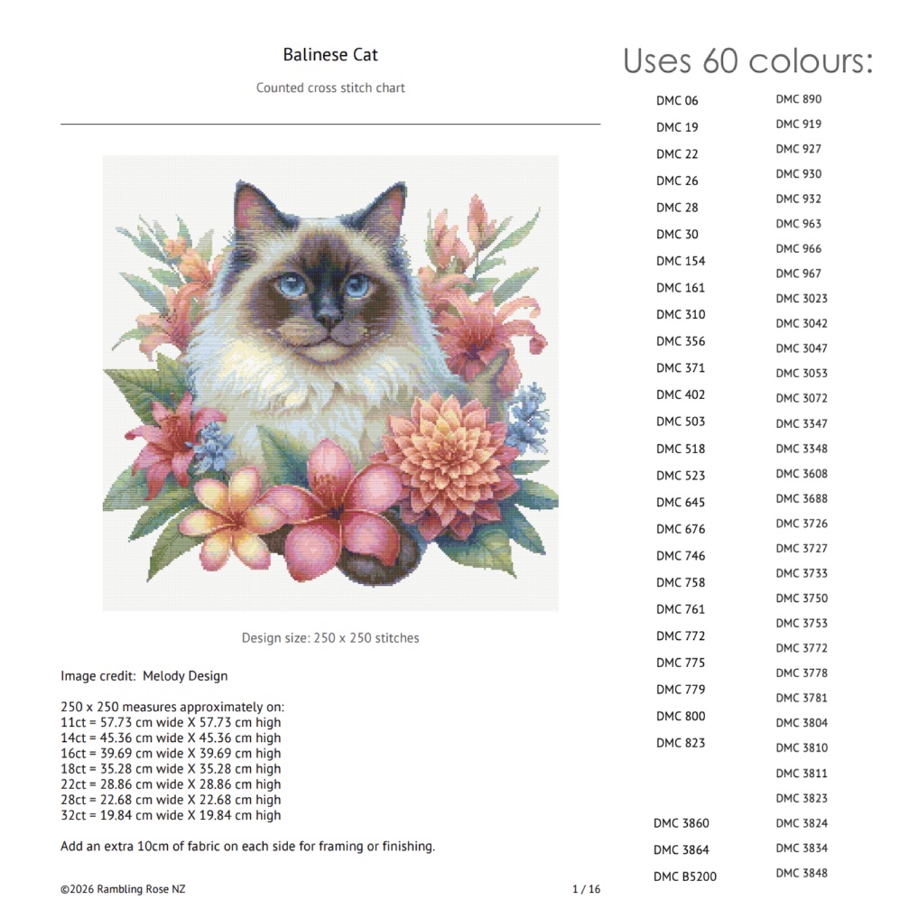 Rambling Rose NZ specialises in highly detailed, cross stitch charts that capture intricate details with photographic precision.