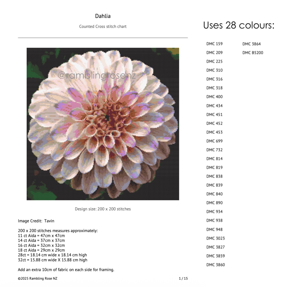Rambling Rose NZ specialises in highly detailed, cross stitch charts that capture intricate details with photographic precision.