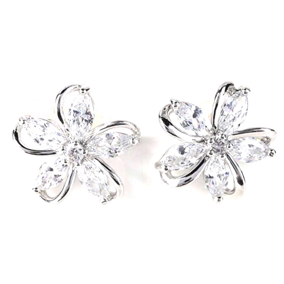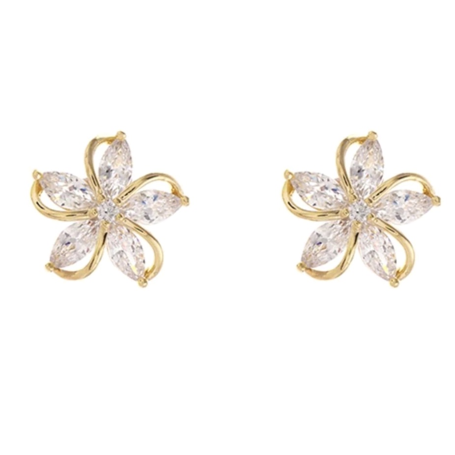 Beautiful floral cubic zirconia earrings.Β The zirconia are set in gold- or silver-plated copper, on gold- or silver-plated, non-allergenic, stainless steel ear posts.