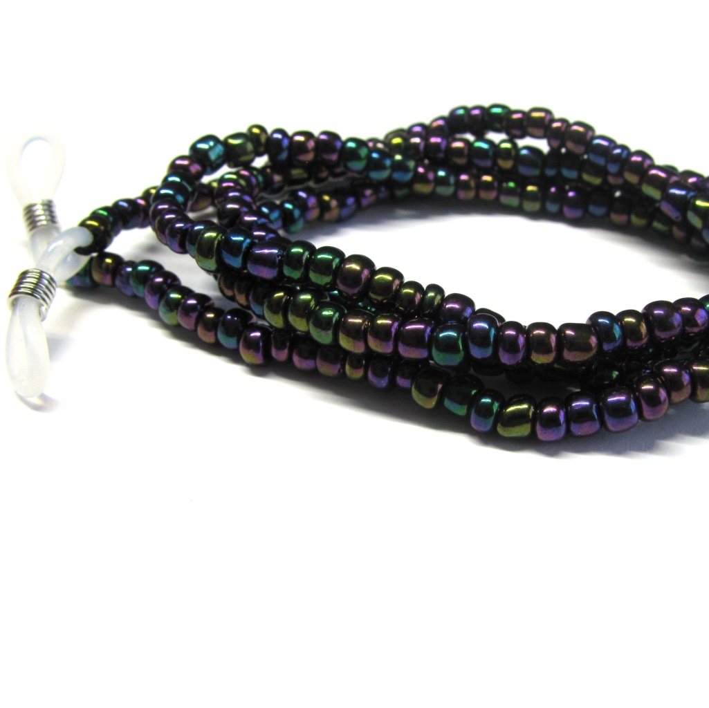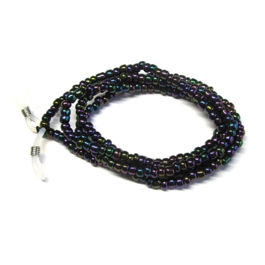Keep your glasses on hand around your neck with this peacock coloured glasses chain.