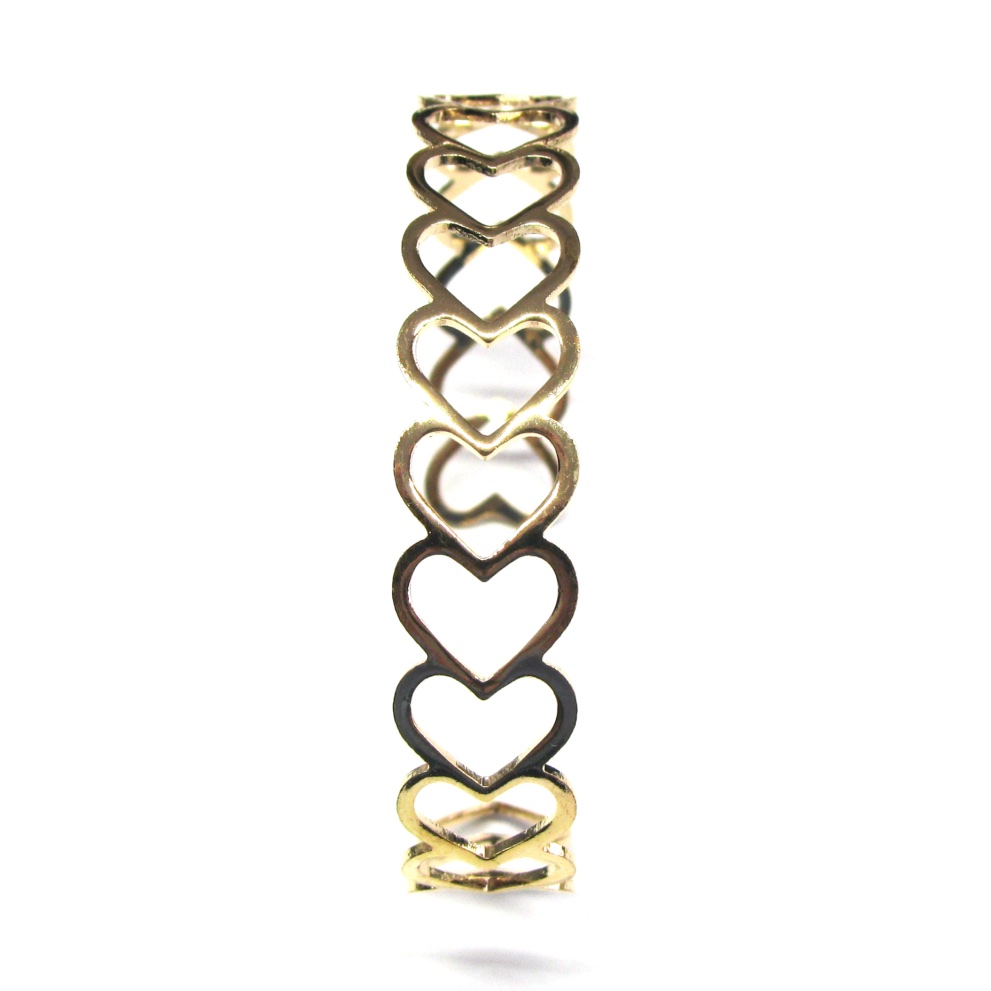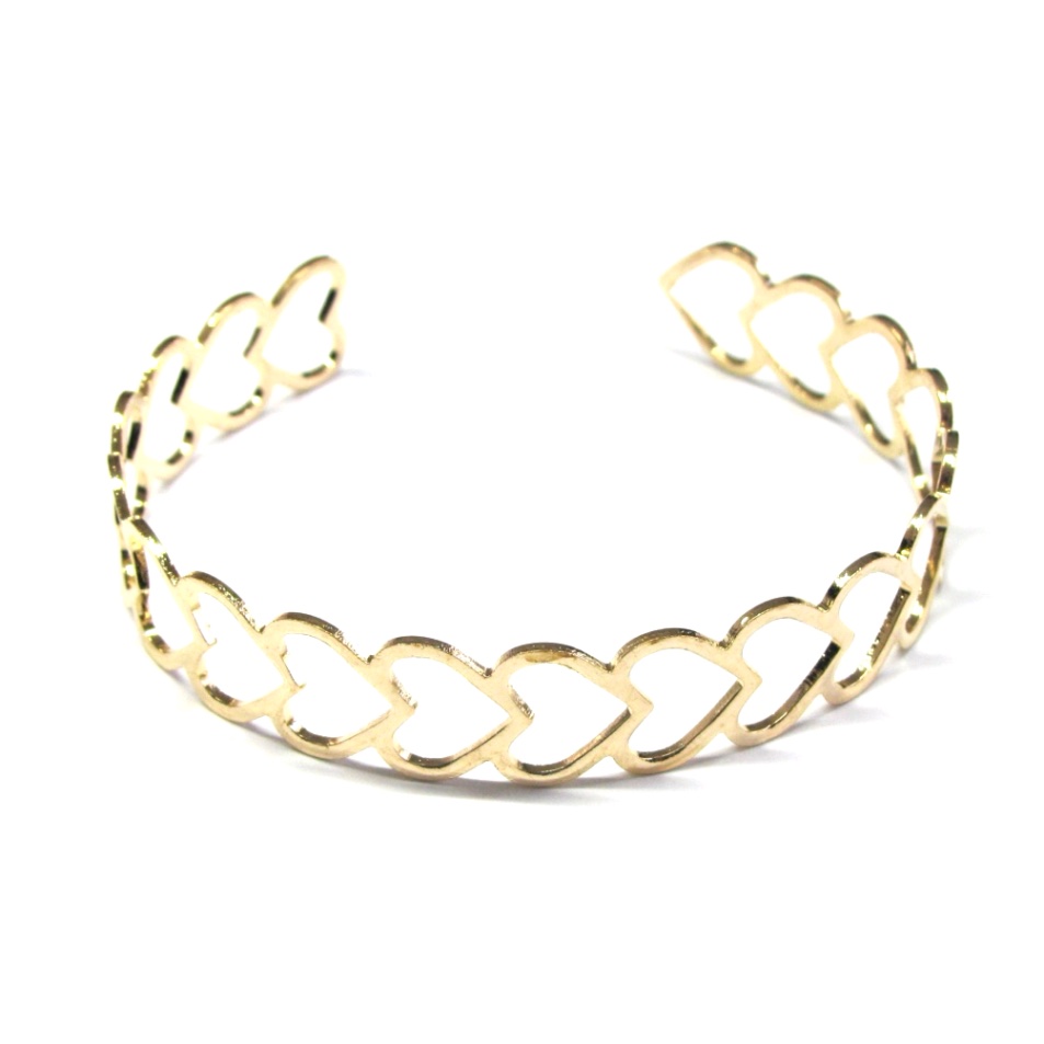 Cascading hearts in gold plated iron alloy form this adjustable cuff bracelet.