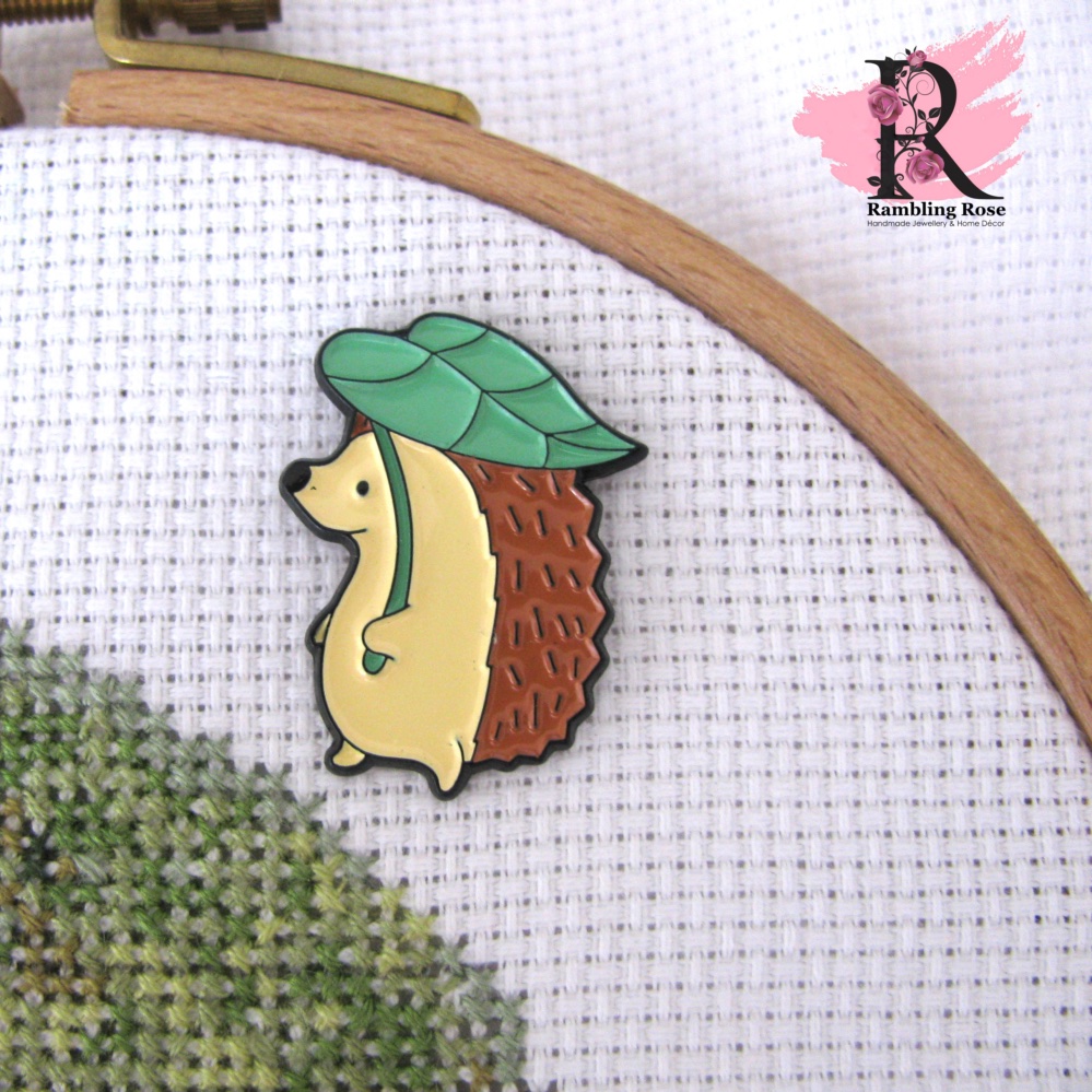 Handmade ‘Hedgehog with Leaf’ enamel magnetic needle minder to keep your needle safe while you’re changing floss colours, or storing your item between stitching sessions.