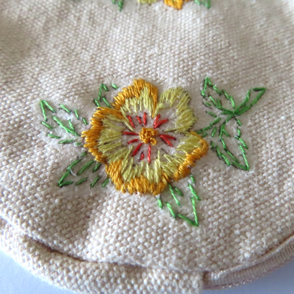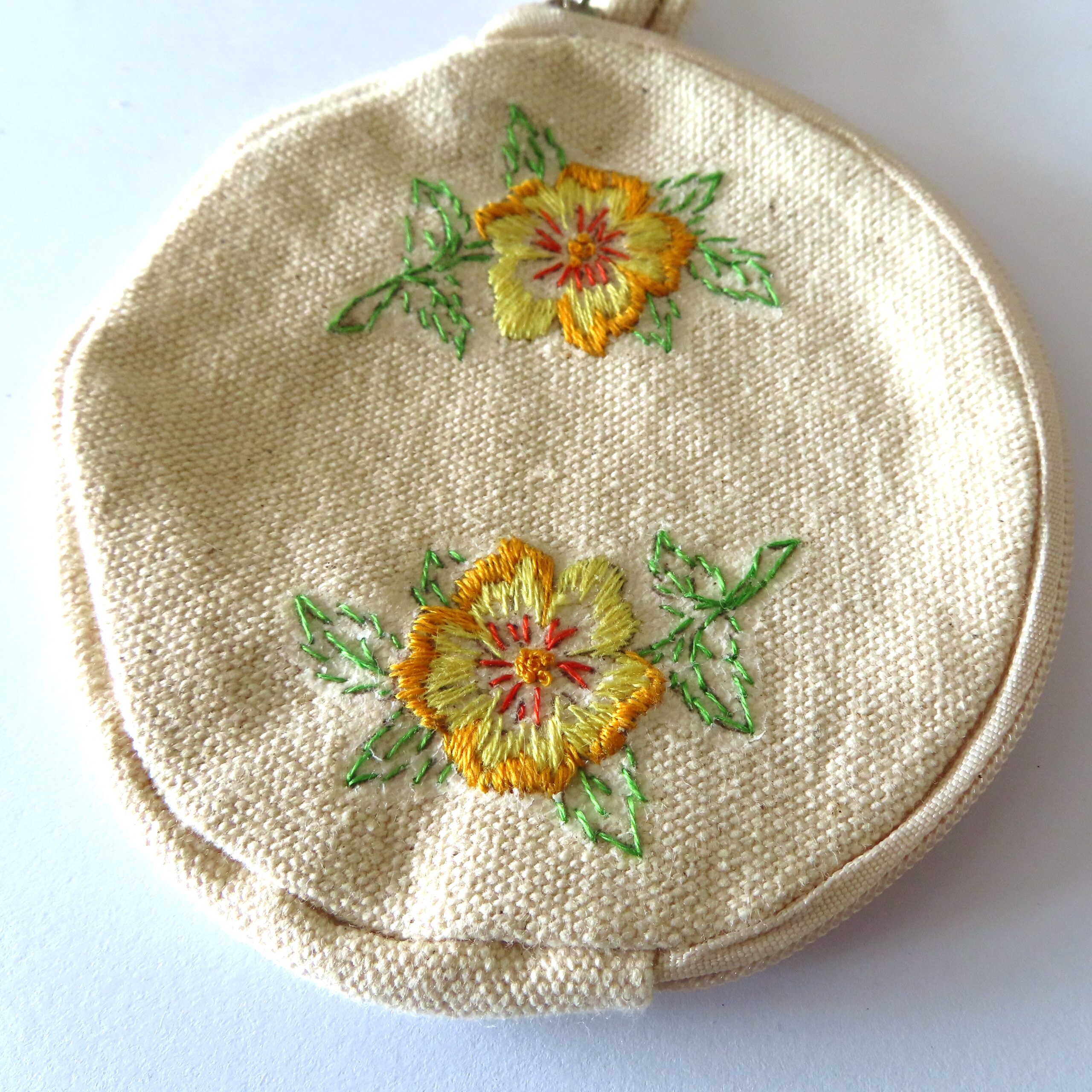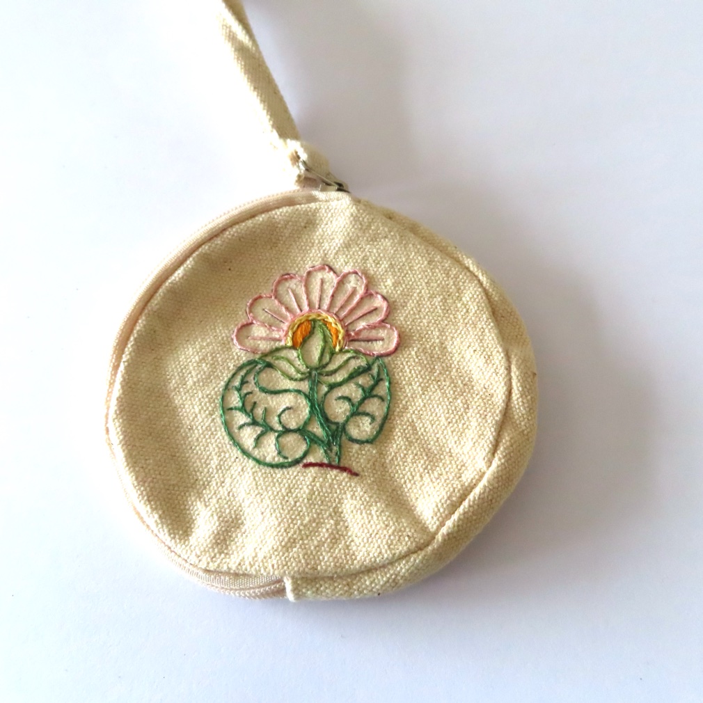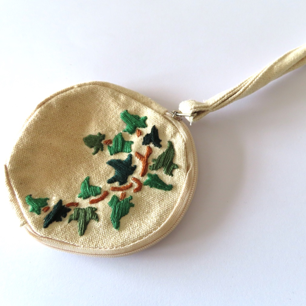 Hand embroidered canvas wrist bag, perfect for carrying keys, lip gloss, tissues, and doggie clean-up bags (or any other small items) when out for a walk.