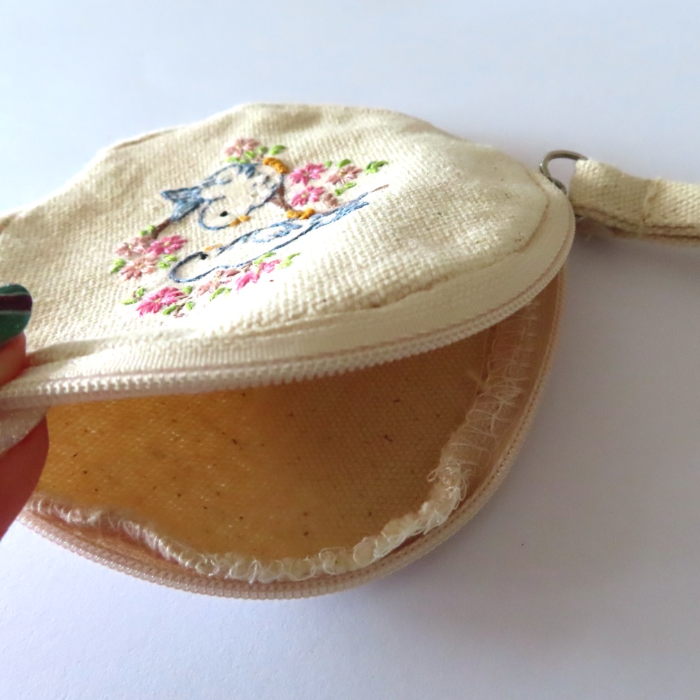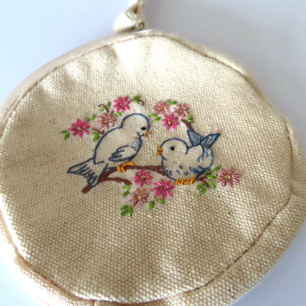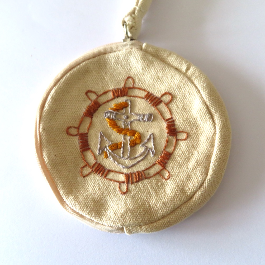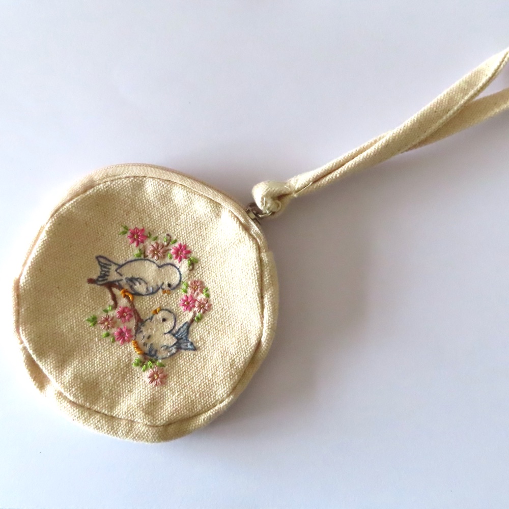 Hand embroidered canvas wrist bag, perfect for carrying keys, lip gloss, tissues, and doggie clean-up bags (or any other small items) when out for a walk.