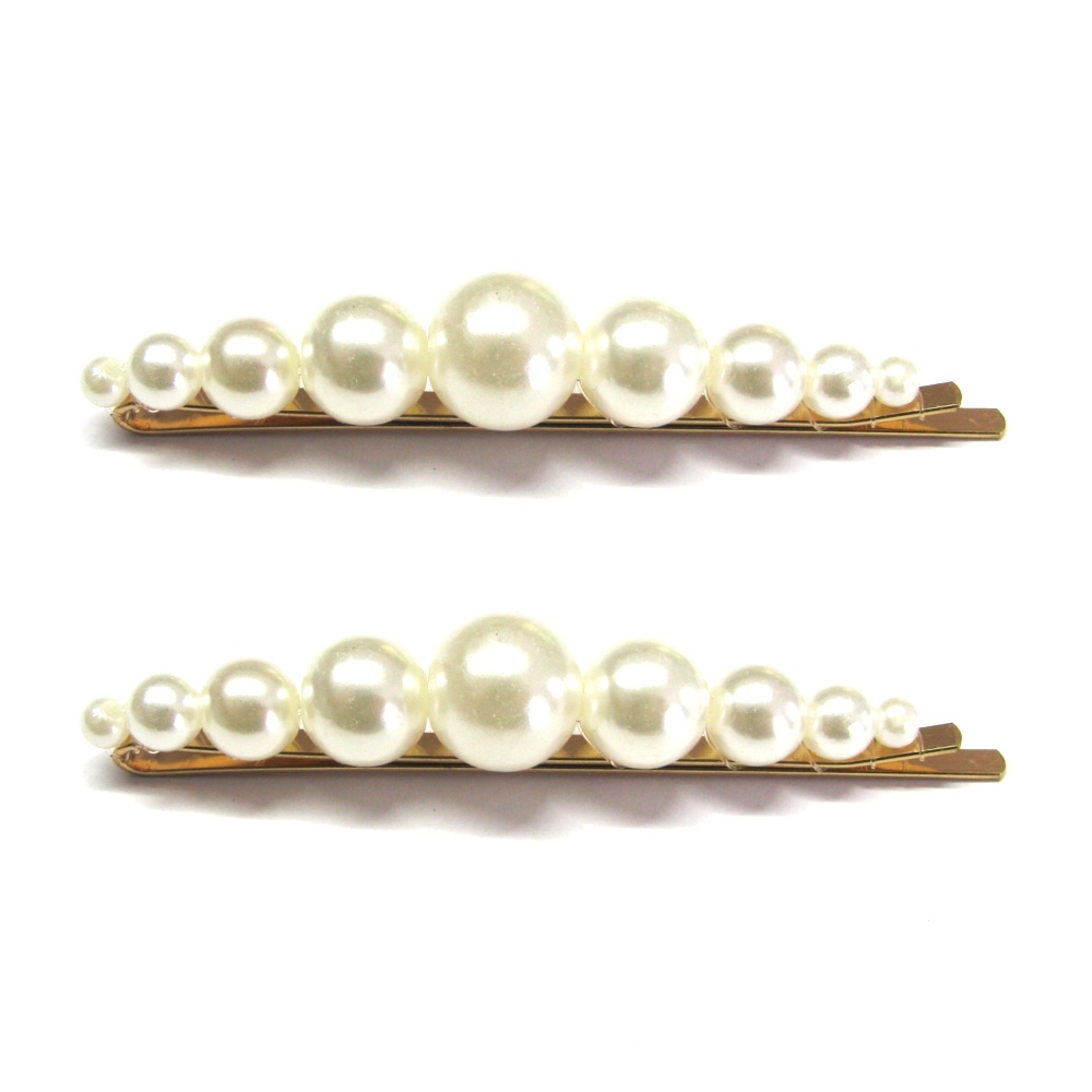Instantly elevate your look with these handcrafted gold-plated hair slides covered with 6mm pearl embellishments. The perfect wedding, school ball, or every day hair accessory.