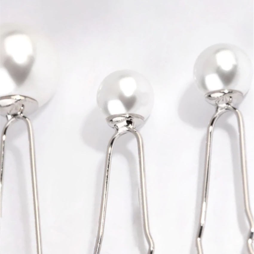 Add a touch of elegance to your look with these Silver Pearl Hair Pins, the perfect accessory to adding sparkle to any special occasion. Topped with lustrous pearls, these pins are ideal for weddings, school balls, or a glam night out. Tuck them into an up-do or scatter them through loose waves.