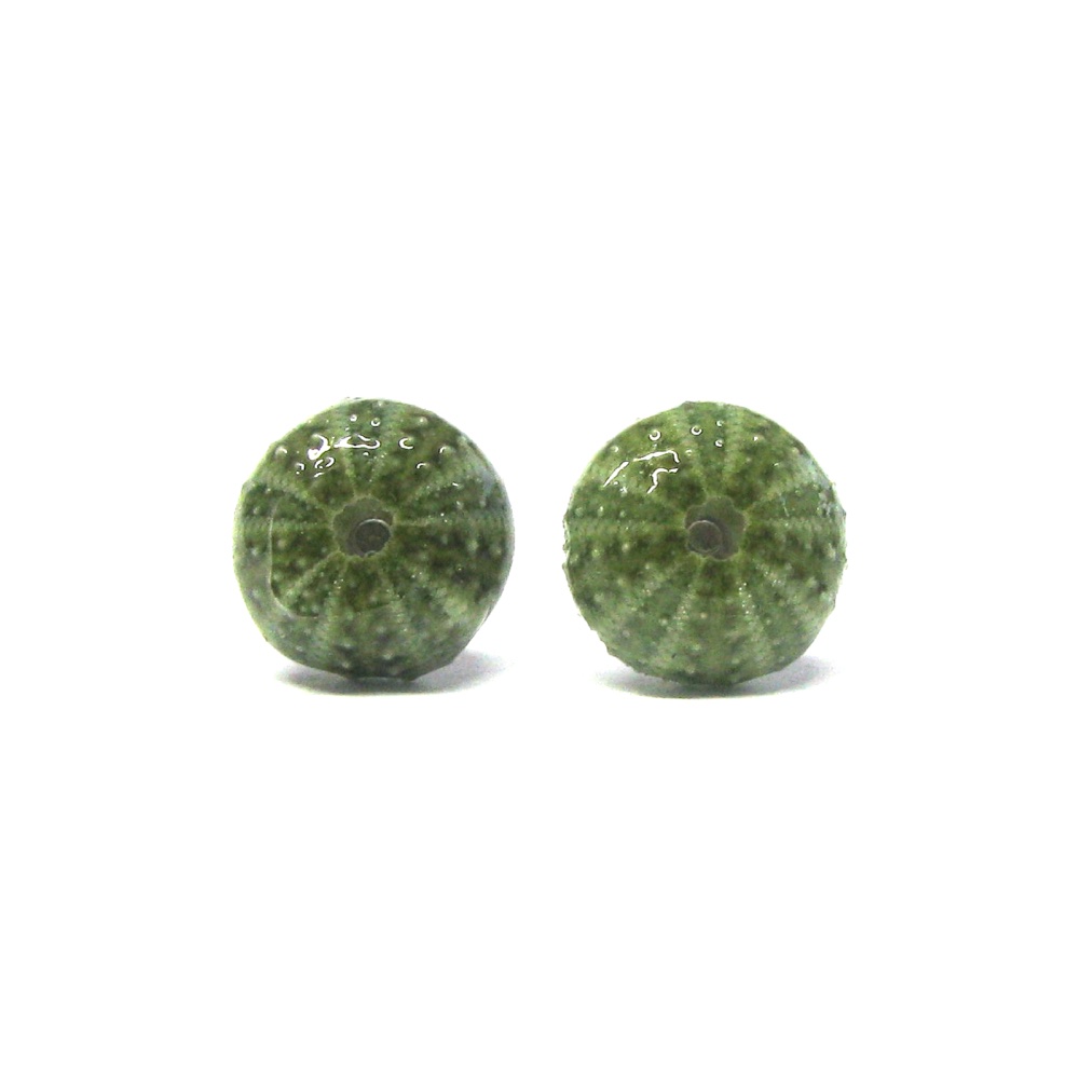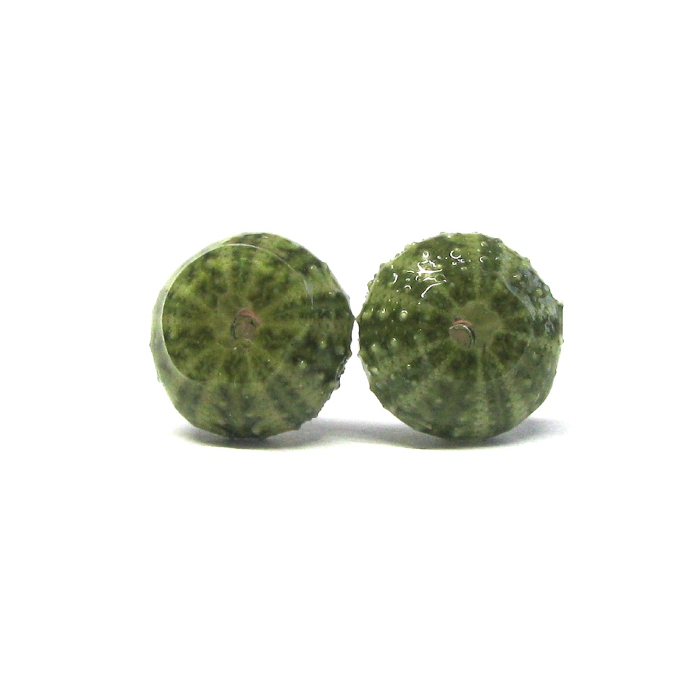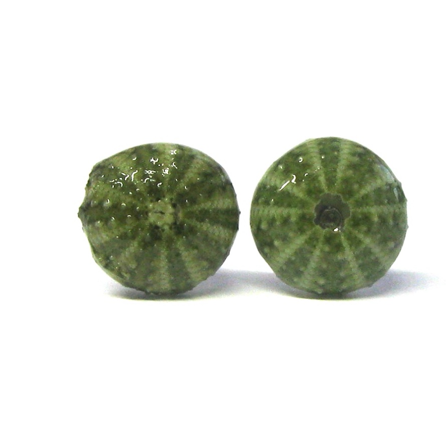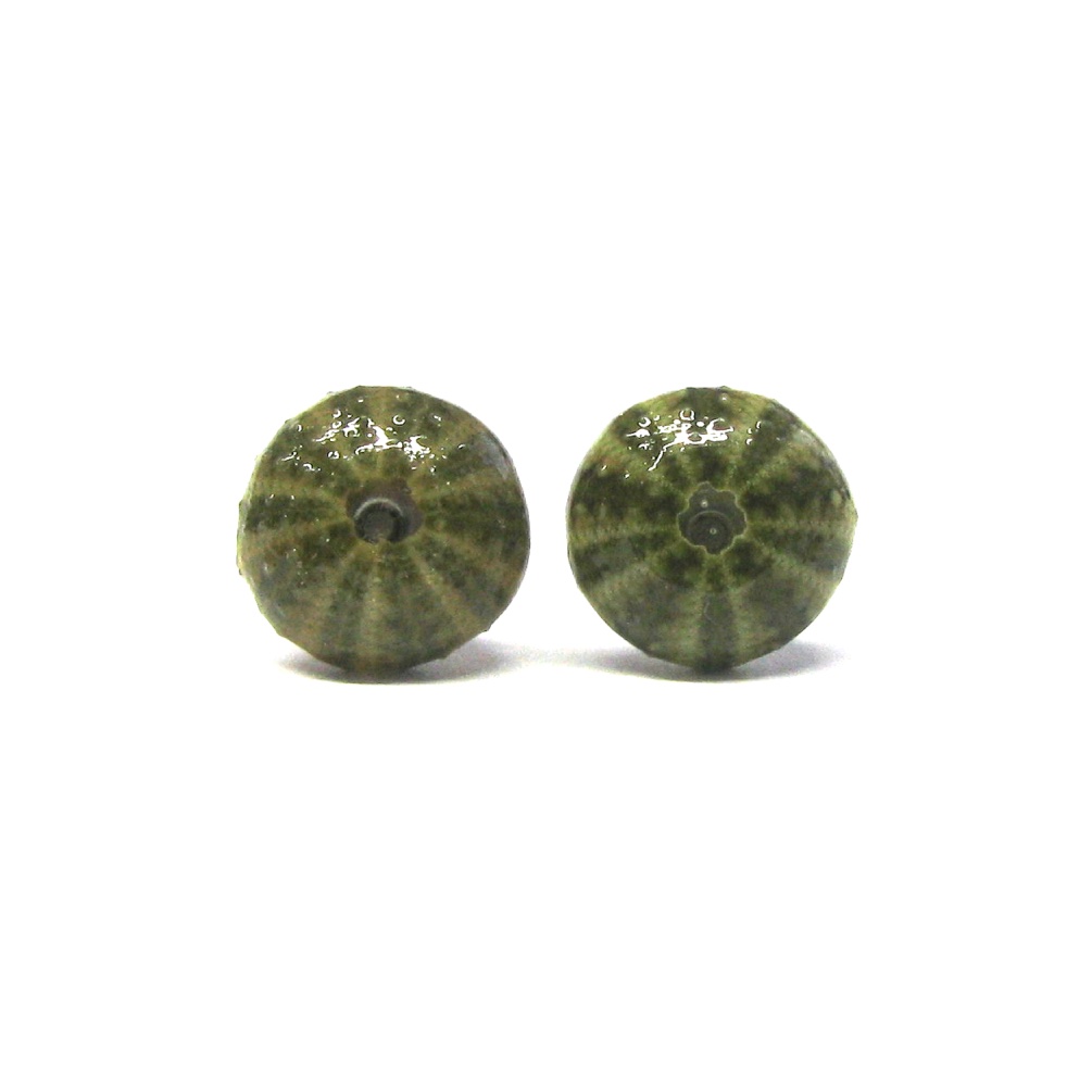 All our Sea Urchin or Kina Shell earrings are made with pieces of real shell.Β The shells are hand-picked by me (or my husband), while we’re out beachcombing. Only completely empty shells are collected, and even though they were empty when picked up, the shells have been thoroughly soaked, scrubbed clean with a soft brush, sun dried for a week and finally coated with a clear acrylic coating to help strengthen the shell. The back of the shells is white.