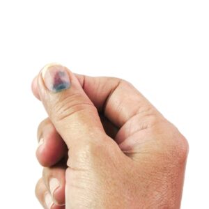 Thumb Finger with Bruised Nail, Subungual Hematoma, on White Bac January 16, 2026 | | Leave a Comment